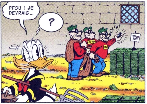Donald voyant les Rapetou voler un sac de billets.