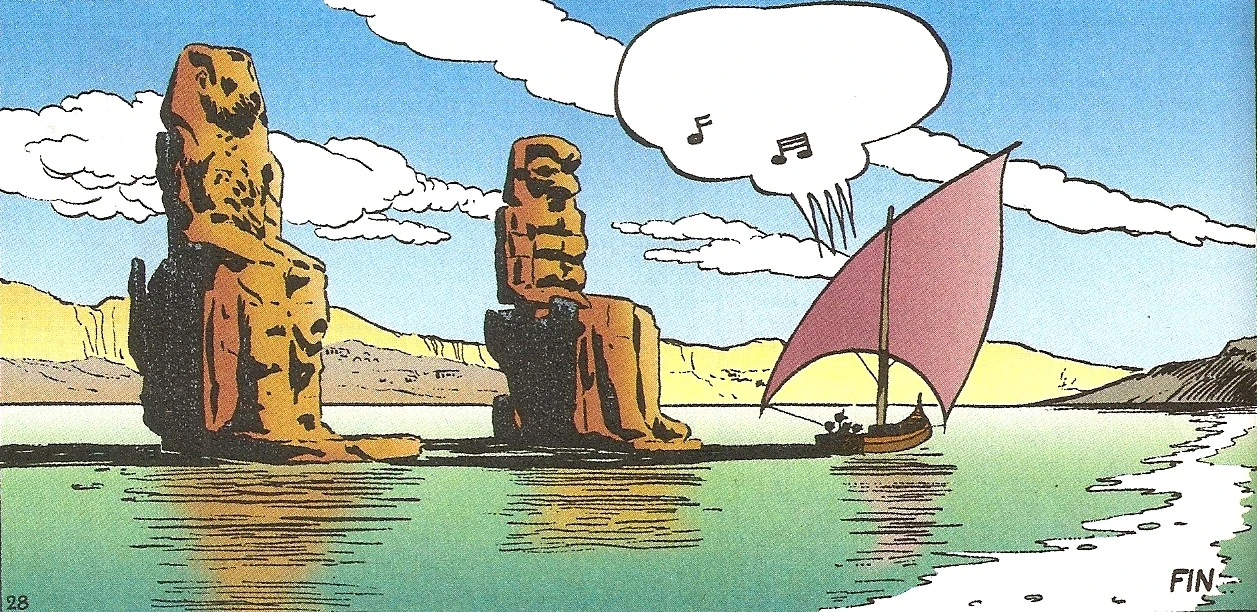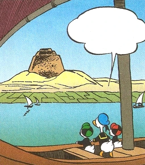 L’Égypte semble avoir été utilisée pour la première fois dans une histoire de Carl Barks datant de septembre 1943, L'anneau de la momie. Dans cette histoire, Donald et deux de ses neveux naviguèrent sur le Nil, qui est, avec l'Amazone, le fleuve le plus long au monde.