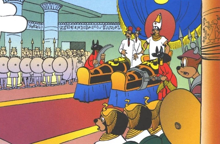 Mickey Mouse a visité l’Égypte avec Iga Biva dans l'histoire de Bill Walsh et Floyd Gottfredson Iga Biva et le secret de Moouk (1950, mais 1984 en France).