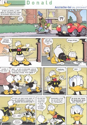 Accroche-toi au pinceau ! est une histoire en bande dessinée de huit planches scénarisée par François Corteggiani et dessinée par Rachid Nawa, publiée pour la première fois en janvier 2008 en France. Elle met en scène Donald Duck, Balthazar Picsou et Riri, Fifi et Loulou Duck ainsi que Baptiste qui fait un caméo. Elle se déroule à Donaldville.