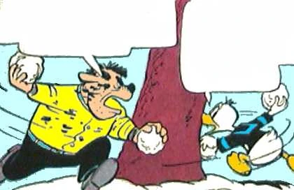 Démonstration de toute l'hostilité de Lagrogne envers Donald Duck.