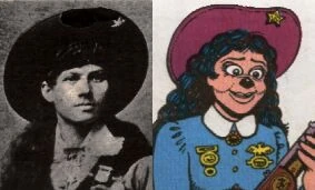 Annie Oakley a été une des femmes légendaires de l'Ouest américain, célèbre pour sa redoutable précision au tir et ayant vécu de 1860 à 1926. Balthazar Picsou en a fait la rencontre en 1890, dans un cirque américain.