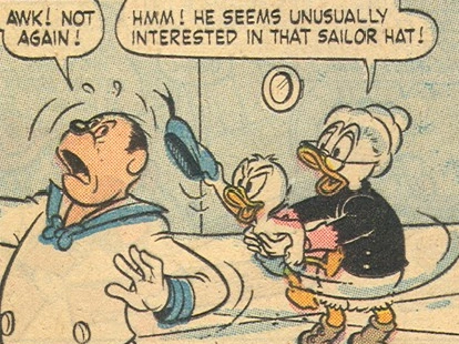 Le jeune Donald Duck tentant de dérober le béret à un matelot.