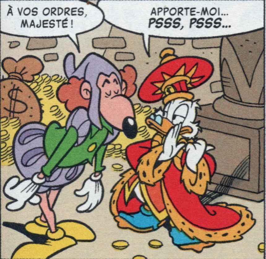 Il est un serviteur du roi Picsou, mais ne semble pas avoir beaucoup de points communs avec Baptiste car il ne se rebelle pas trop contre son patron et n'est pas un majordome, et a donc des tâches différentes à faire.