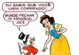 Blanche-Neige se fit aider une fois par Balthazar Picsou contre la Sorcière, et aussi par Donald Duck qui l'avait maudite en la rendant aveugle.