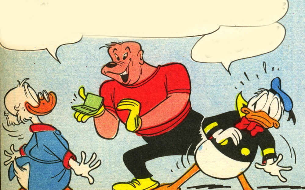 Cela déclencha alors la jalousie de Donald, qui alla donc espionner Burt et découvrit que l'homme, bon en apparence, était en fait un bandit qui essayait d'abuser Picsou en devenant son fils adoptif, afin de posséder toute sa fortune.