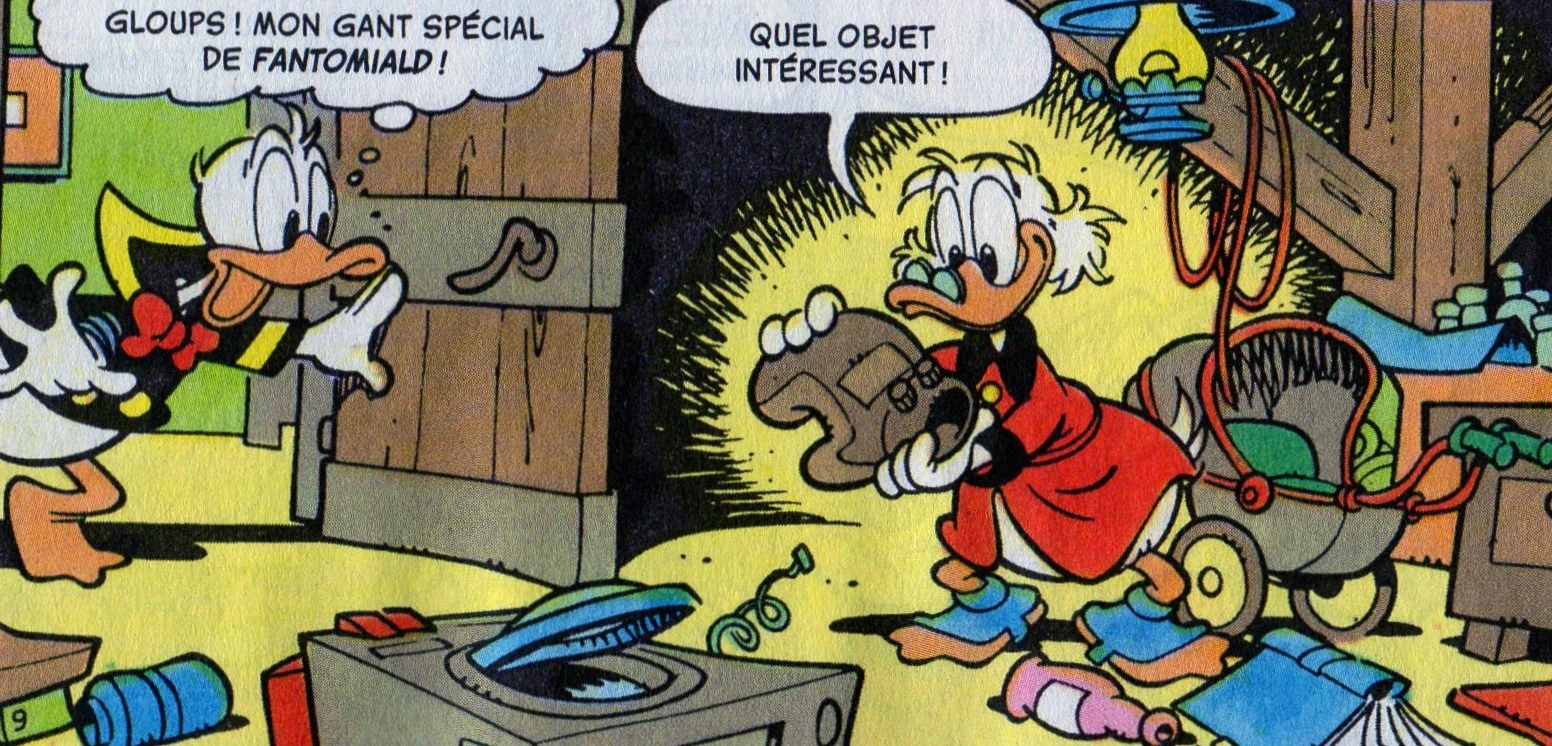 Picsou découvre le gant spécial de Fantomiald dans le grenier de Donald.