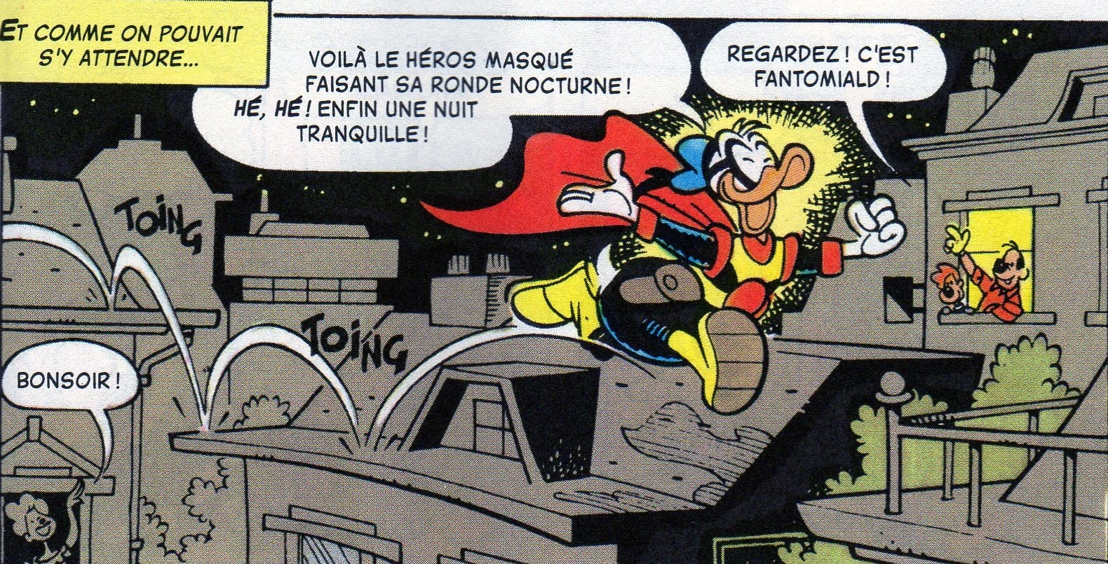 Le lendemain soir, dans une nouvelle ronde du super-héros, un habitant de la ville feint d'être en détresse pour lui voler sa nouvelle ceinture. Et une autre assomme le super-héros pour lui subtiliser un morceau de son costume. C'en est trop pour Fantomiald, surtout lorsqu'il découvre sa voiture en morceau ! Et nuit après nuit, cela recommence à chaque fois !