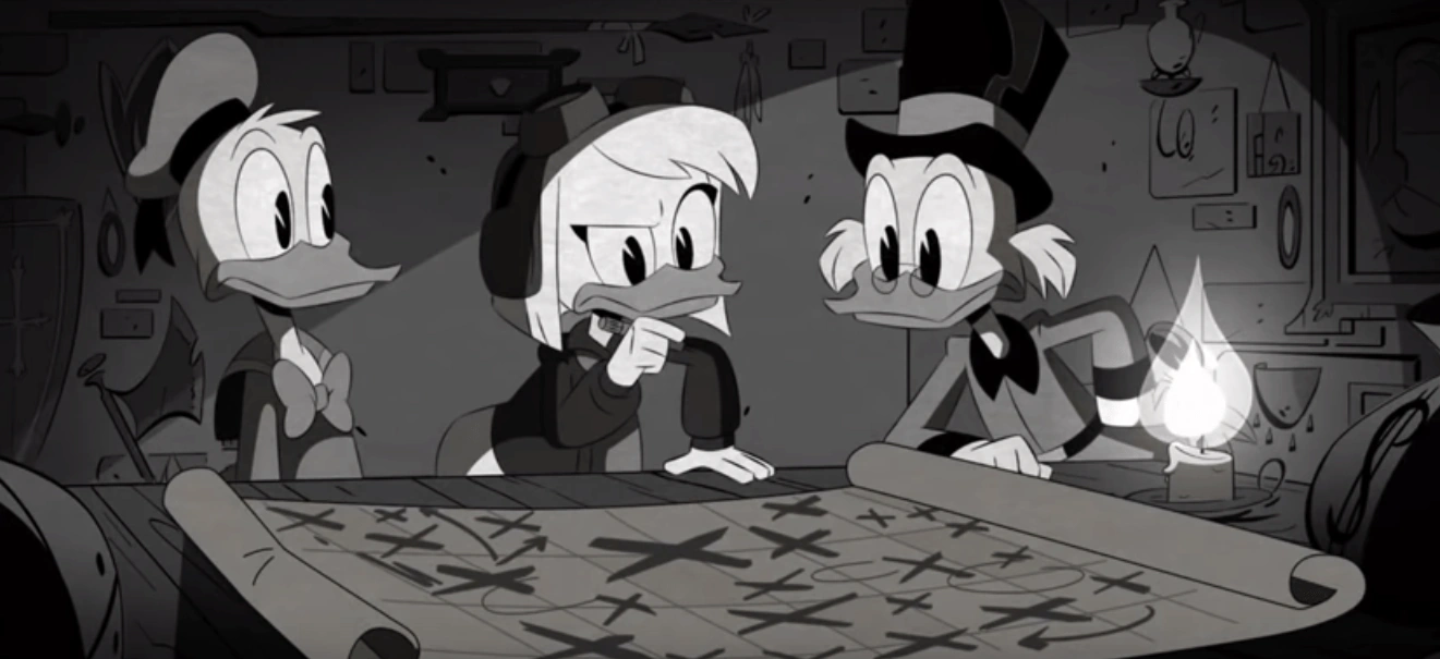 Della partant à l'aventure avec son oncle Picsou et son frère Donald.
