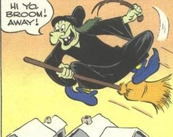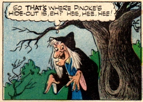 La Sorcière dessinée en 1954 par Dick Moores dans l'histoire Trois consciences en paix !, où elle s'oppose notamment à Riri, Fifi et Loulou Duck.
