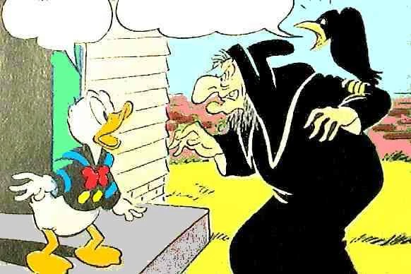 La Sorcière avec Balthazar Picsou, dessinés par Paul Murry en 1957 dans l'histoire La sorcière inoffensive.