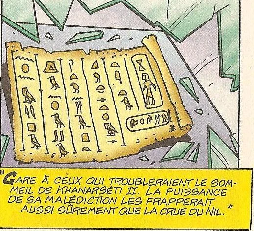 - Dans Picsou et les joyaux de Khanarséti, on peut apercevoir le cartouche du roi Khanarséti II, qui est en réalité celui de Ramsès II. Comme les pharaons portaient plusieurs noms (dont l'ensemble formaient la titulature royale), il est possible que Khanarséti II se soit également prénommé Ramsès ;