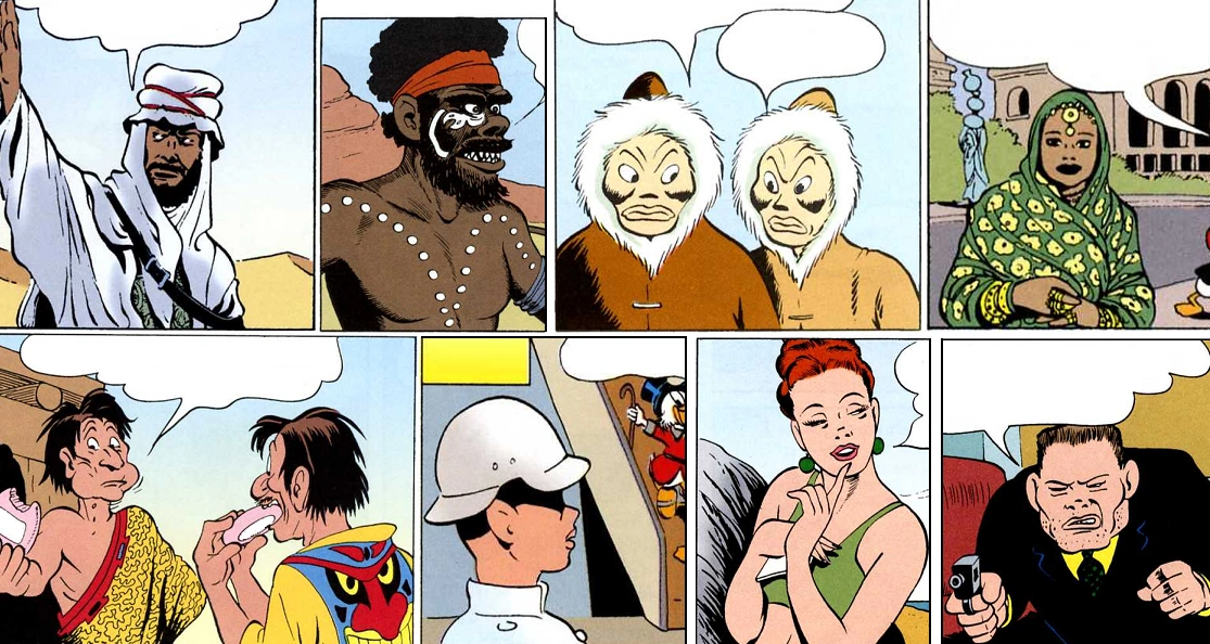 Autrefois, il était établi que si l'on devait faire intervenir un humain dans une histoire Disney, il fallait impérativement l'affubler de diverses caractéristiques animales, comme un bec, un groin de cochon, une truffe ou des oreilles de chien. Mais l'auteur américain Carl Barks, qui aimait dessiner les femmes dans le style pinup de son époque, a souvent ignoré cette règle.