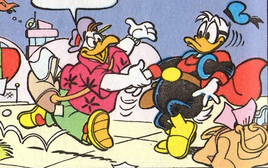 Un jour d'août, alors que Donald Duck avait excessivement chaud chez lui, le canard se dit qu'il pourrait profiter de son statut de star (grâce à Fantomiald) pour pouvoir bénéficier de vacances offertes. Ainsi, il fait appel à John Mac Notes pour qu'il puisse lui organiser tout un séjour. Mais ce dernier va entraîner le super-héros dans de nombreuses aventures qui ne sont pas de tout repos : le canard va devoir arrêter des braconniers sur l'atol de Kanaroa, sauver des alpinistes en détresse dans les montagnes allemandes ou encore participer à une course à Venise.