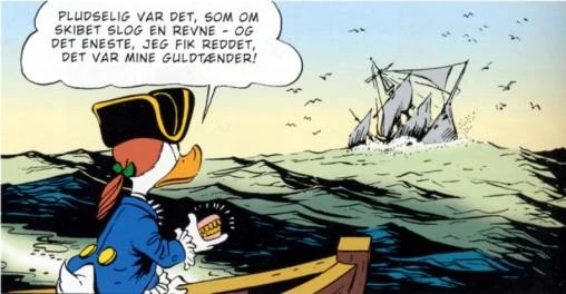 En rentrant pour la Jamaïque dans le but d'apporter à temps le raifort, Kenneth qui vit son équipage déserteur à la dérive décida de les ramener à bord. Or parmi eux se trouvait un matelot corrompu par S. Croc McChicane pour qu'il s'assure que le raifort n'arriverait pas à sa destination, c'est ainsi que suite au sabotage de ce dernier, l'« L'Oie d'or » coula avec toute sa cargaison au large du cap sud d'Haïti. Kenneth ne pu en sauver que ses dents en or.