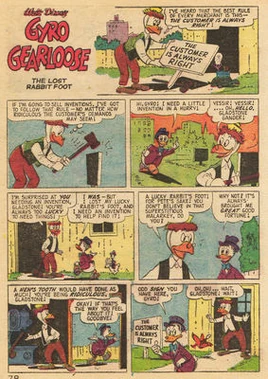 Géo Trouvetou cloue une pancarte à l'entrée de son atelier, où il y a écrit: « Le client a toujours raison ». À ce moment là, Gontran Bonheur arrive. Il a besoin d'une invention, pour retrouver sa patte de lapin porte bonheur. Sa patte de lapin est tombée dans l'eau, Géo invente alors un casque avec des lampes pour voir à travers la vase. Géo propose à Gontran de l'essayer pour qu'il retrouve sa patte de lapin. Mais Gontran refuse car il pense que si Géo veut que ce soit lui qui teste l'invention, il n'a pas confiance en elle. Géo plonge alors et Gontran assure sa sécurité avec la corde. Géo aperçoit la patte de lapin mais il passe au travers d'une coque d'une vieille épave. Le trou a modifié le courant marin et fait remonter la vase et aussi la patte de lapin. À ce moment là, Filament pêche la patte de lapin qu'il jette à la poubelle croyant que ce n'est pas important. Géo cherche encore mais sans résultat puisque la patte est à la poubelle. Malheureusement, des pieuvres entravent Géo qui tire sur la corde de sécurité mais sans résultat car une pieuvre l'empêche. Géo voit alors une canne à pêche pendre et il tire dessus en espérant que le pêcheur comprenne. Le pêcheur comprend vite, c'est Filament qui alerte tout de suite Gontran qui dormait. Celui-ci délivre Géo des pieuvres et c'est au tour de Gontran d'aller chercher dans les vases sa patte de lapin (qui est toujours dans la poubelle). À peine sous l'eau, Gontran trouve un coffre en métal rempli de pièces. Il remonte alors à la surface avec le coffre en disant à Géo qu'il a raison, que sa patte de lapin n'a rien à voir avec sa chance.