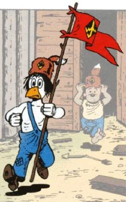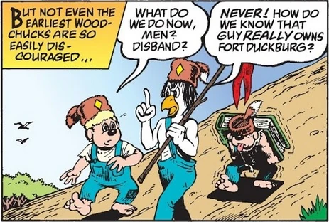Fulton Trouvetou et un autre Castor Junior venant défendre le Fort Donaldville face à l'arrivée de la Famille Picsou.