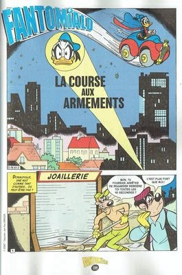 La course aux armements est une histoire longue en bande dessinée de trente-quatre planches dessinée par Giulio Chierchini et scénarisée par Bruno Concina, publiée pour la première fois en Italie en avril 1996. Elle met en scène principalement Donald Duck et son alter-ego Fantomiald ainsi que l'inventeur Géo Trouvetou. L'action se déroule à Donaldville.