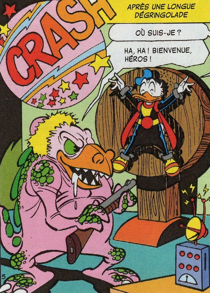 En reprenant ses esprits, Fantomiald fait alors face à un énorme monstre rose qui l'a attaché sur une roue en bois. Le monstre lui explique qu'il souhaite l'éliminer et utilise alors un fusil pour lui tirer des balles en plastique dessus. Cependant, la roue en bois tourne trop vite et elle se détache. Fantomiald utilise alors les objets se trouvant près de lui pour les jeter sur le monstre. Dans ces objets se trouve la dernière invention de Géo qu'il jette sur le monstre. Cela provoque un énorme bourdonnement et, tout à coup, le monstre se transforme en... Géo !