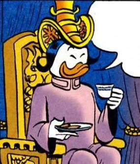 Ce personnage est apparu pour la première fois dans l'histoire de Carl Barks Des capsules pour Tralla La, publiée en juin 1954. Il a été réutilisé par Don Rosa dans Retour à Xanadu, publiée pour la première fois en mars 1991.