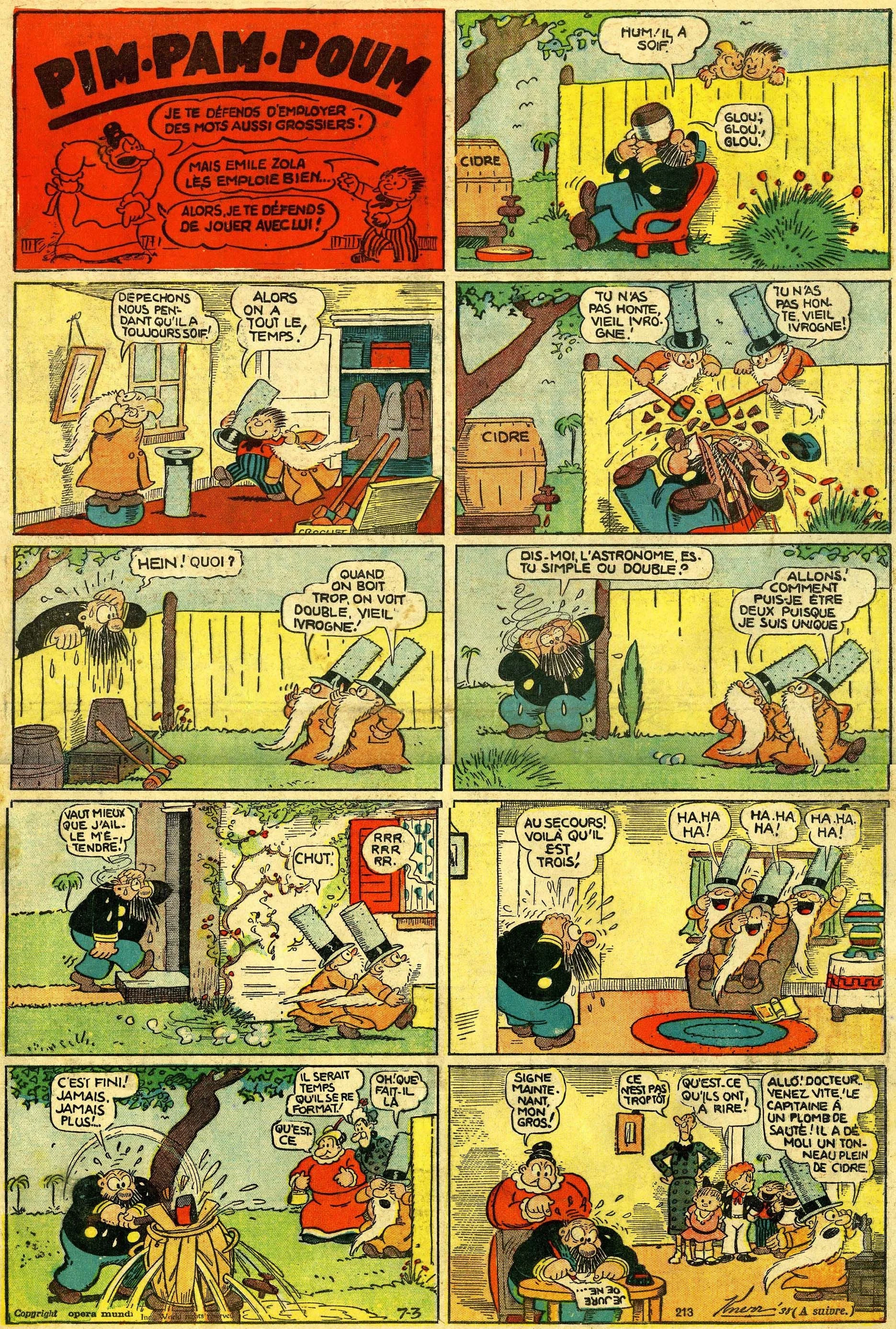 Gag de la série américaine Pim-Pam-Poum !, réalisé à la fin des années 1930 par Rudolph Dirks.