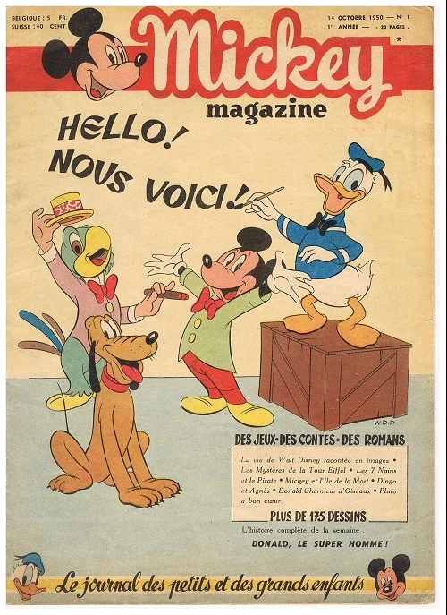 À l'époque, le jour de congé des écoliers est encore le jeudi. Un moment privilégié au milieu de la semaine qui est consacré aux jeux, aux bons moments passés en famille, et aussi à la lecture. Le 18 octobre 1934 est un jour à marquer d'une pierre blanche. Une grande nouveauté débarque dans les kiosques. S'agit-il d'un nouvel illustré ? Non, c'est beaucoup mieux et, surtout, beaucoup plus ambitieux. C'est le premier numéro d'un véritable journal pour enfants portant le nom de la souris déjà partie à la conquête du monde : Mickey Mouse, un personnage né en 1928 des imaginations de certains Walt Disney et Ub Iwerks. Le journal est vendu trente centimes, et il ne lui faut que quelques semaines pour battre tous les records de vente, en approchant les quatre-cent-mille exemplaires. Du jamais vu ! Dès ses premiers pas, Le Journal de Mickey est un véritable phénomène de presse.