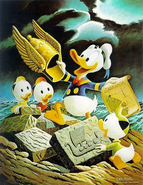 Une des trois peintures réalisées par Carl Barks sur le thème du casque d'or. Celle-ci s'intitule Golden Helmet et date de 1972.