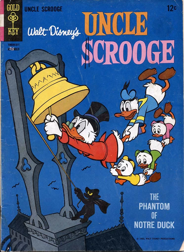 Le fantôme de Notre-Duck poursuivit par Donald Duck sur la flèche de la cathédrale.