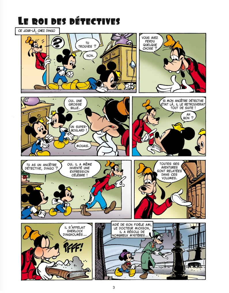 Le roi des détectives est une histoire en bande dessinée de huit pages scénarisée par François Corteggiani et dessinée par Rachid Nawa. Elle a été publiée pour la première fois le 19 février 2003 en France. Elle met en scène Dingo et Jojo et Michou Fieldmouse dans le présent et Sherlock Dingholmès et le docteur Mickson dans le passé. L'action se déroule à Mickeyville dans le présent et à Londres dans le passé.