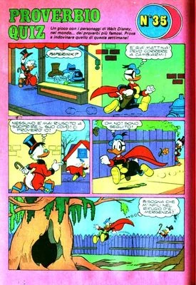Alors qu'il se promène dans la rue, Balthazar Picsou rencontre Fantomiald. Il décide de le suivre pour découvrir où se trouve son repaire secret. Mais le super-héros, sentant qu'il est suivi, se cache dans un tronc d'arbre. S'approchant, Picsou invective le super-héros pour qu'il sorte. À sa grande surprise, c'est Donald qui en sort avec sous le bras, un panier rempli de champignons. Picsou est confus, assurant qu'il a bien vu Fantomiald entrer dans le tronc d'arbre. Mais Donald fait comprendre à son oncle que les apparences peuvent être parfois trompeuses.