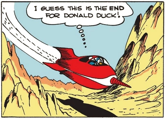 Dans l'histoire de Carl Barks de juin 1948 Sprint galactique !, Donald Duck participa à une course en fusée, qui consistait en aller le plus vite de la Terre à la Lune et d'en revenir. Dans cette histoire, on découvre que le satellite a une atmosphère qui permet d'y respirer (contrairement à l'astre du monde réel), et de grosses créatures vertes extraterrestres vivent sur la Lune.