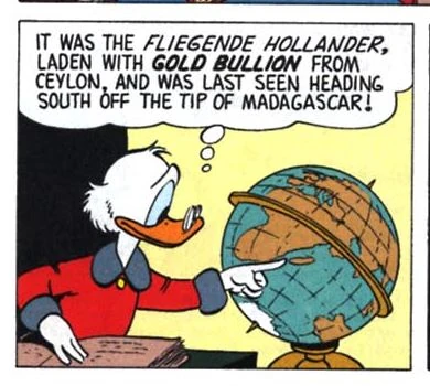 Madagascar est apparu pour la première fois dans l'histoire de Carl Barks Le Trésor du Hollandais Volant.