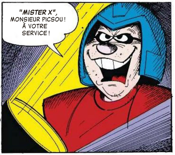 Mister X est le nouveau justicier de Donaldville, se définissant comme le concurrent de Fantomiald qui vaut bien moins que lui selon lui-même. Il est capable de mettre fin à divers larcins, d'ouvrir les portes grâce à une collection de passe-partout ou encore de rétablir l'électricité après une coupure qui plongea la ville dans le noir. Il sera même nommé par le maire de Donaldville super-héros et ami public numéro un de Donaldville.
