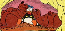 Donald souffrant d'orite hyperaiguë et entouré de deux ours.