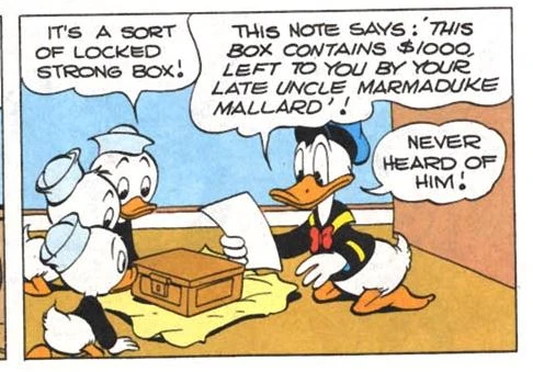Afin de jouer un mauvais tour à Donald, Balthazar Picsou lui inventa un autre oncle, Oscar Maraucanar, qui lui aurait laissé un héritage de mille dollars qui ne serait encaissé que si Donald trouvait mille autres dollars en cinq jours.