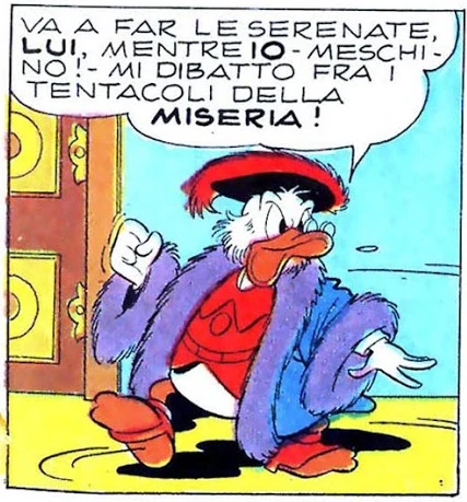 Paperon y Paperonios est toujours dessiné avec un lourd manteau bordé de fourure: un habillement luxueux mais très bizarre parce que l'histoire se déroule en plein été à Seville, qui est l'une des villes plus chaudes d'Europe.