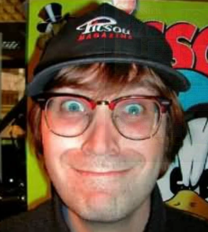 Pascal Pierrey faisant une pose loufoque pour les besoins du Picsou Magazine n°480, qui marque les quarante ans du mensuel.