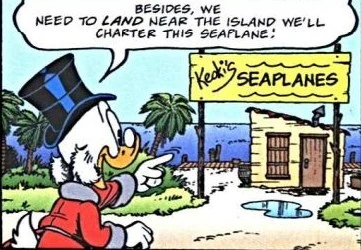 Alors que Picsou et Gripsou étaient à la recherche d'une île d'or, ils firent tous les deux escale à l'aéroport de Manille, afin de prendre de l'essence et des provisions. Picsou mit en place un moyen infaillible pour ne pas que Gripsou puisse partir (en effet, il a mis son avion en quarantaine), puis loua un hydravion dans une petite entreprise pas cher pour partir vers l'île.