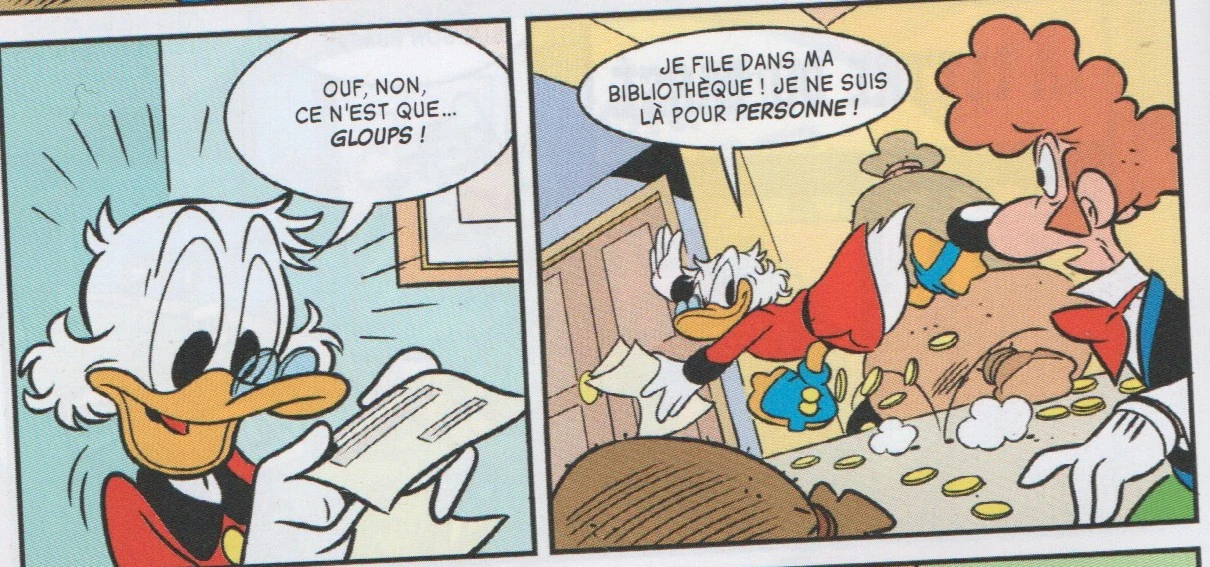 Donald et les neveux interrogent le notaire de Picsou.