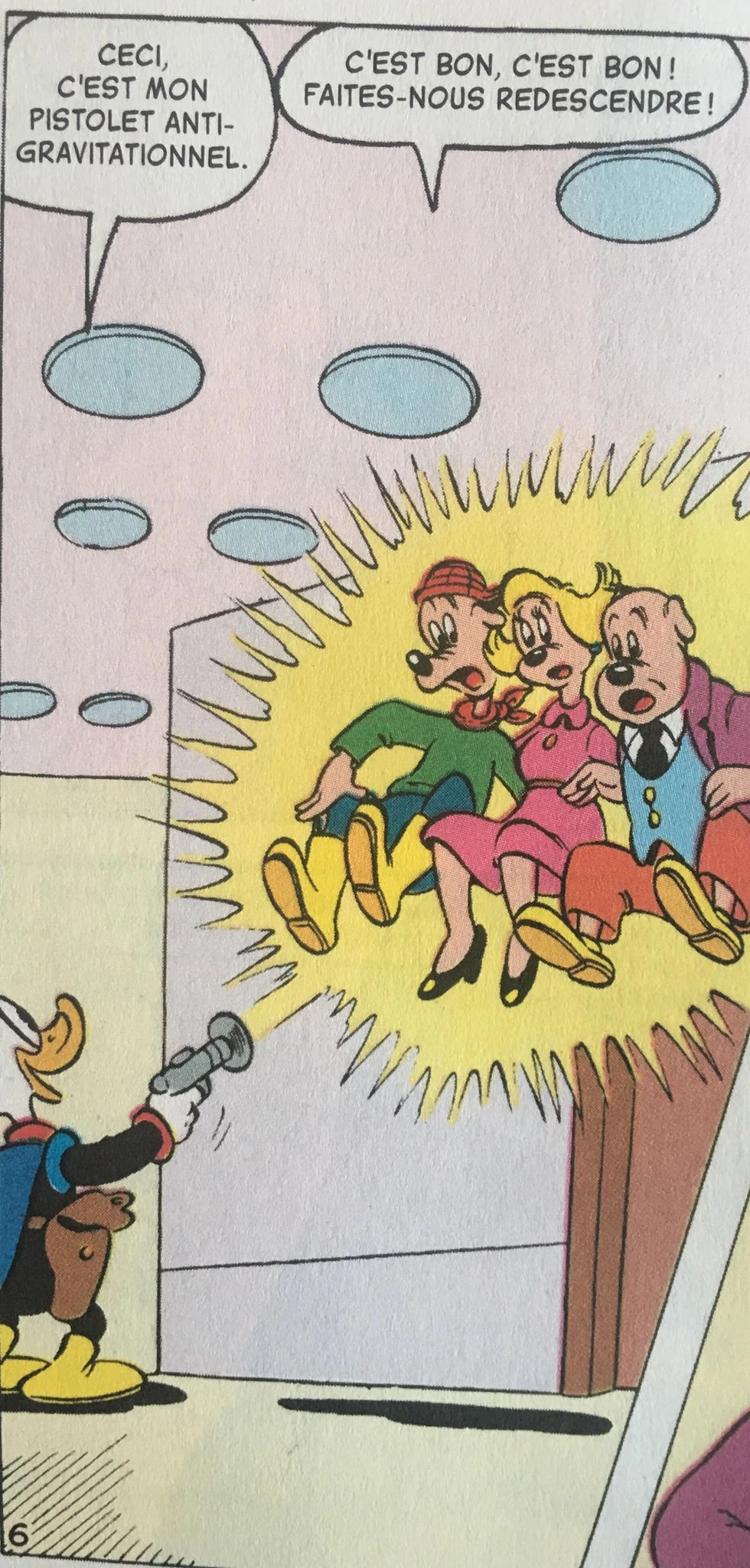 Le pistolet anti-gravitationnel est apparu pour la première fois dans l'histoire L'étoile disparue ! de Giorgio Ferrari et du Studio Francesc Bargada, publiée pour la première fois le 1er août 1984 en Italie dans l'Almanacco Topolino n°332.