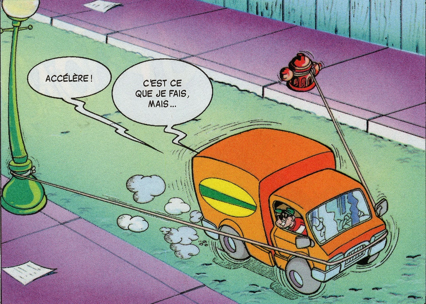 Le camion des Rapetou est stoppé grâce à un piège tendu par Mini-Gomme.