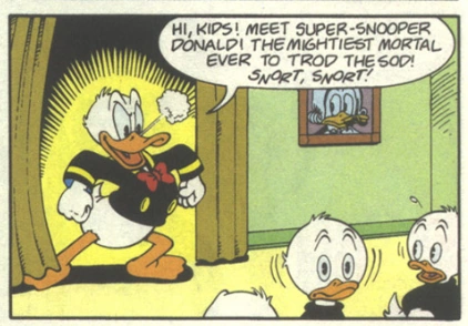 Il est possible qu'il apparaisse sous forme de personnage d'arrière-plan dans l'histoire de Don Rosa Super Donald contre Super Duflair !