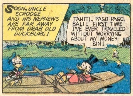 La Polynésie française apparaît pour la première fois dans l'histoire de Carl Barks Un coffre-fort invulnérable, datée de juin 1962.
