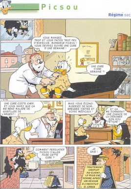 Picsou est en visite chez son médecin, et les nouvelles sont maussades : il mange trop et ne fait pas assez de sport. Seule solution: une semaine de cure. Bien entendu, le milliardaire refuse de jeter son argent dans ce genre de vacances, mais le médecin lui rappelle que cela lui fera économiser de nombreux soins médicaux...