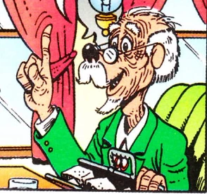 En 2024, le personnage apparaît enfin sous sa forme réelle dans une case de l'histoire Trouvé dans les Andes de Kari Korhonen. Il y est cette fois-ci représenté en canard anthropomorphe et serait un professeur de Donaldville. Mais dans cette histoire, Picsou voit des œufs carrés, alors qu'il ne croira pas le voyageur du train qui lui en montrera plus tard en 1880...