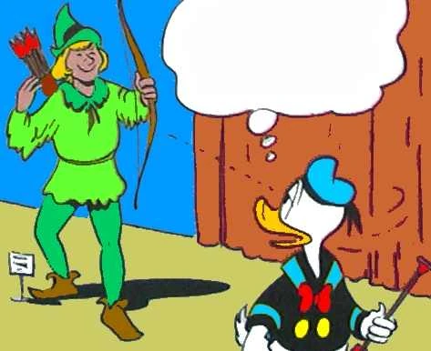- Dans l'histoire à nouveau de Carl Barks, Boulettes dans la jungle, Donald cite le nom de Robin des Bois et se vente d'être un meilleur archer que lui.
