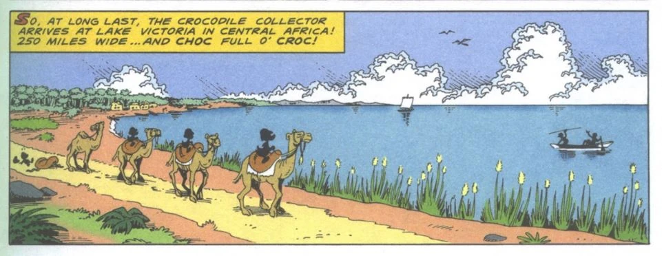 - ↑ À l'époque où se déroulait Donald et la chasse aux crocos du Nil, Don Rosa plaçant toutes ses histoires dans les années 1950