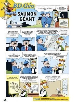 Saumon géant est une histoire en bande dessinée de quatre planches scénarisée et dessinée par Carl Barks , publiée pour la première fois en septembre 1960 aux États-Unis . Elle met en scène Géo Trouvetou et Filament . Elle se déroule à Donaldville .