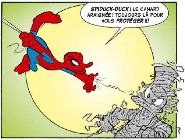 Spiduck-Duck est un canard anthropomorphe de l'univers de Donald Duck.