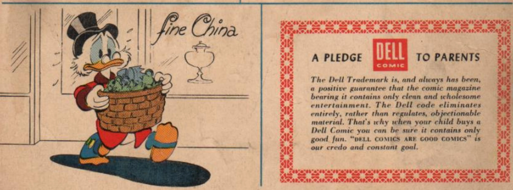 Lors de sa première publication dans le comic book américain Uncle Scrooge n°17, la dernière case fut occupée par le Dell Pledge to Parents , une déclaration de bonne moralité de la maison d'édition Dell à l'attention des parents de ses jeunes lecteurs.